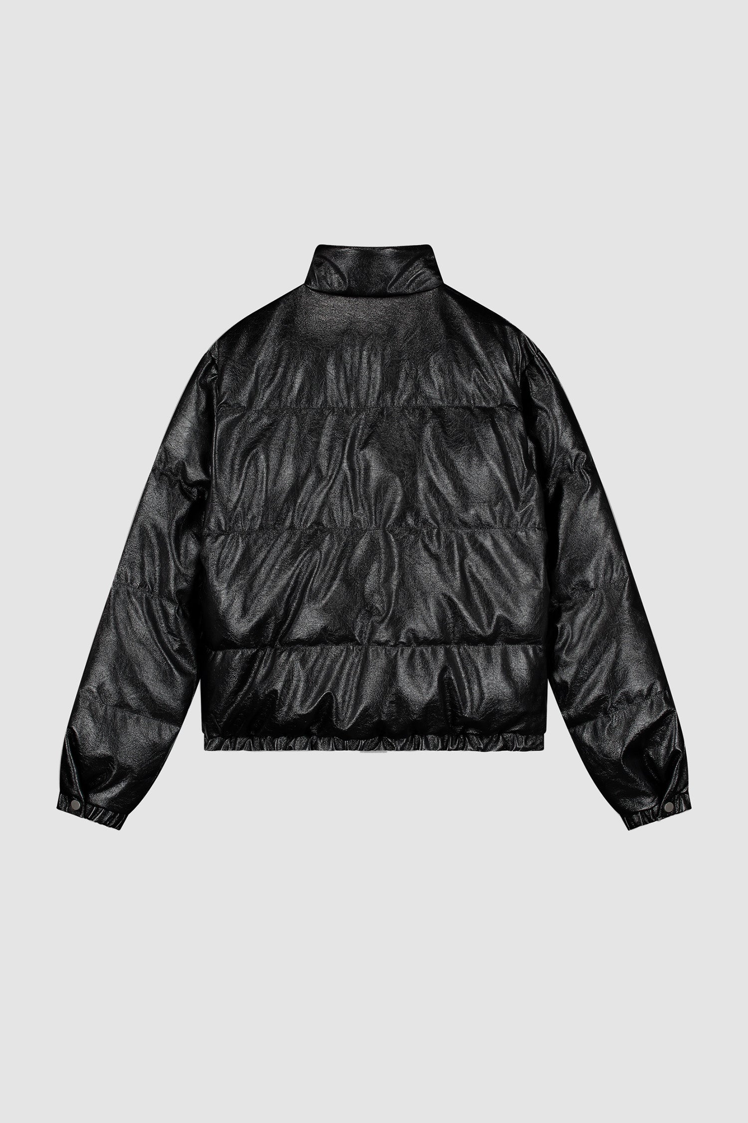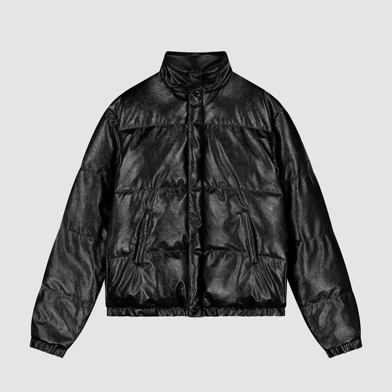 La doudoune est confectionnée en simili cuir haut de gamme et généreusement rembourrée de Primaloft. Elle est dotée de cordons de serrage à l’ourlet pour ajuster la longueur à la perfection. Cette doudoune noire est dotée d’une fermeture à glissière dissimulée, de deux poches passepoilées à l’avant et d’un col montant. Elle est rehaussée d’un logo métallique ton sur ton sur la tête de la manche gauche.