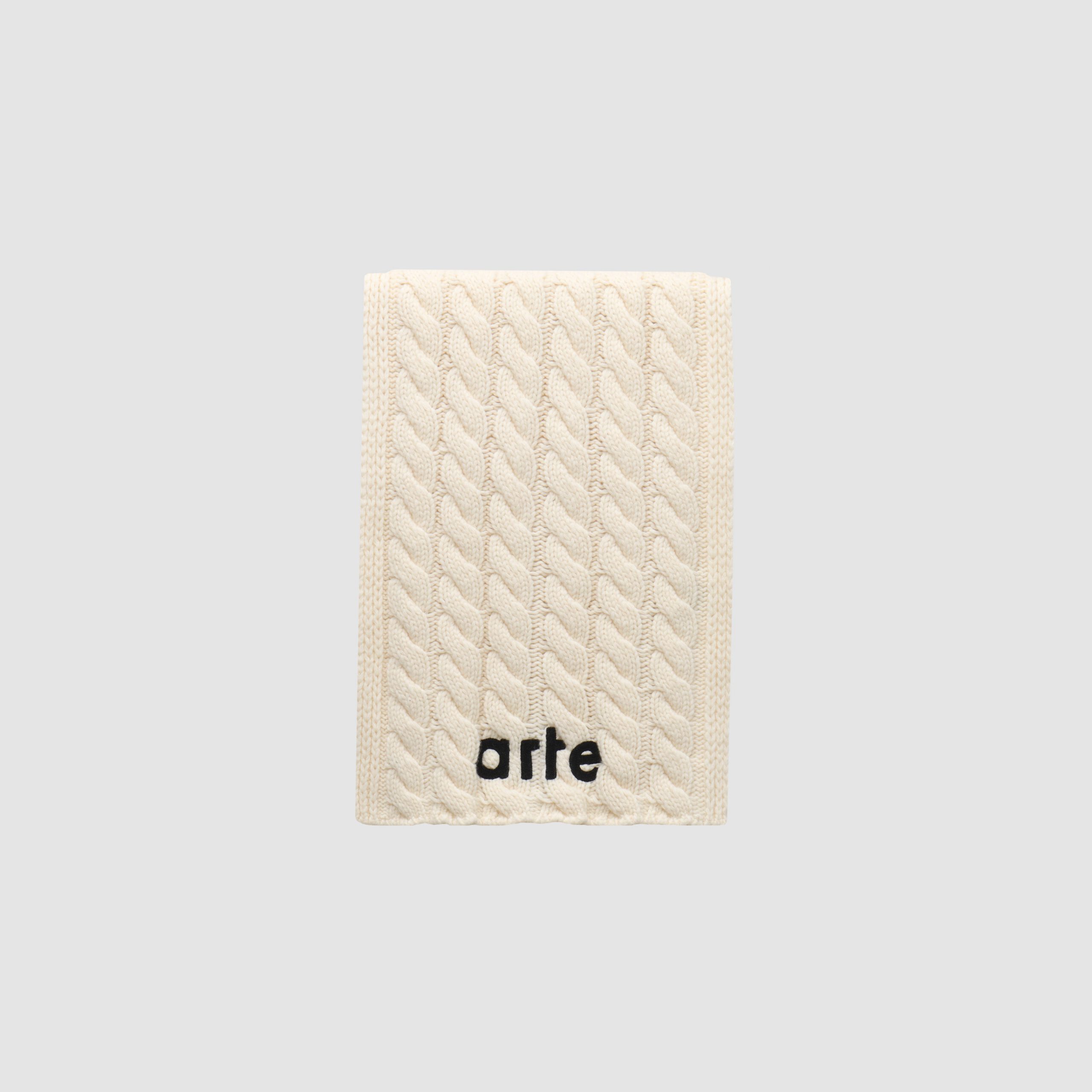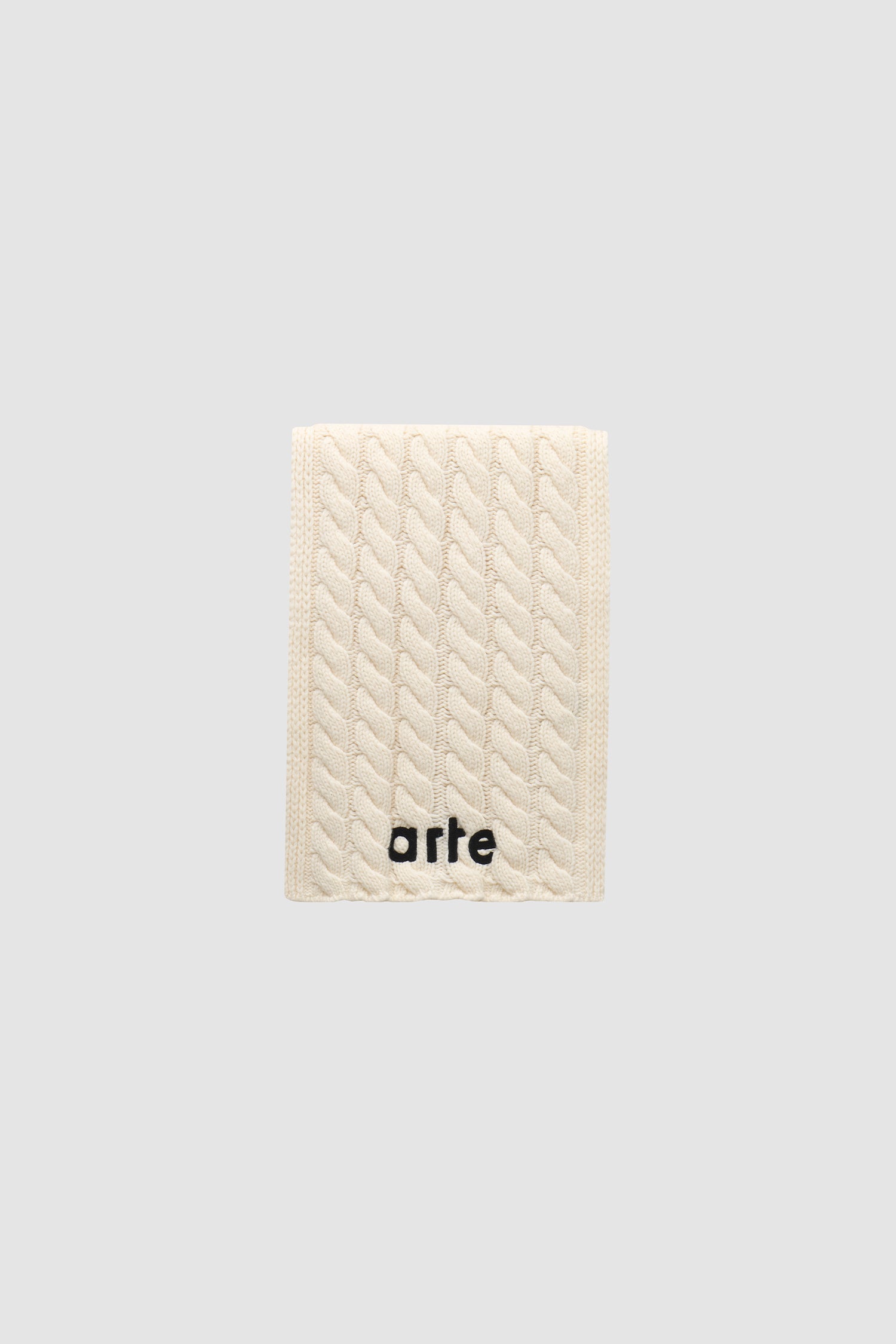Confectionnée en laine mélangée de première qualité au toucher doux, cette écharpe de couleur crème est ornée d’un logo Arte brodé en noir.