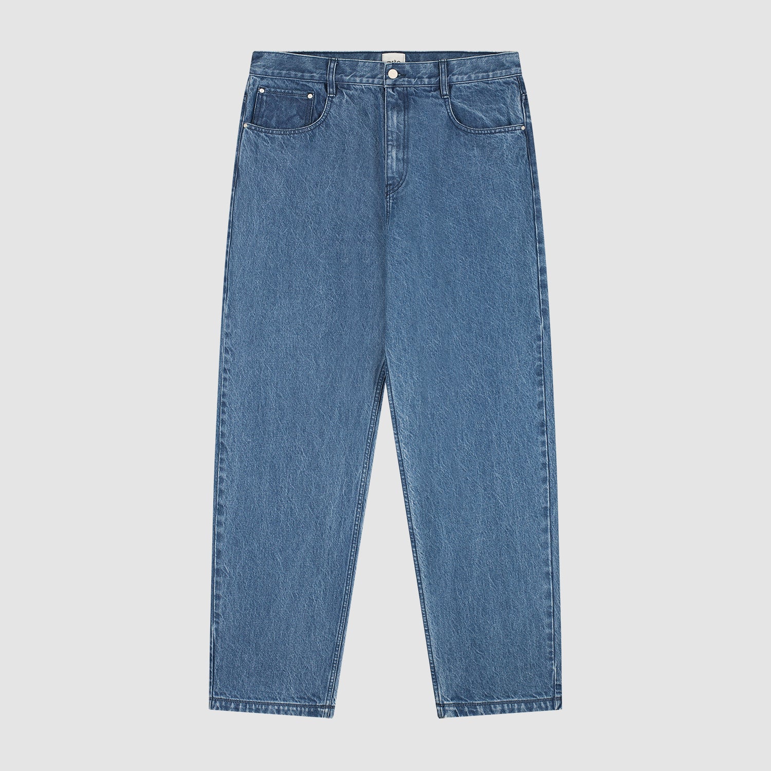 Le pantalon en denim est un pantalon de tous les jours qui comporte une étiquette de marque tissée sur la poche arrière droite. Ce jean en denim brut présente une coupe classique à 5 poches et une coupe ample et décontractée.