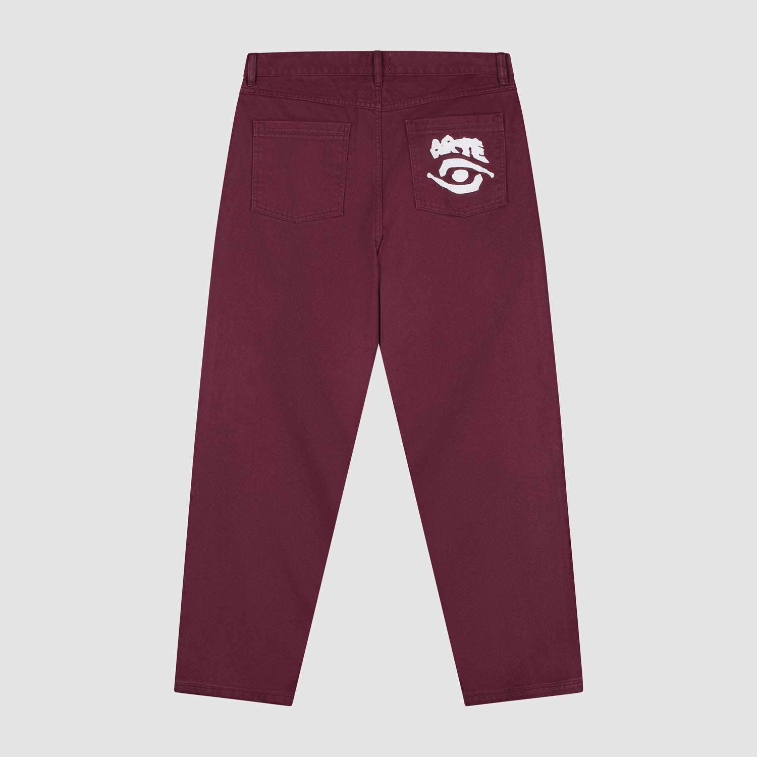 Ce pantalon de tous les jours est orné d’une broderie blanche qui reprend le thème de la collection sur la poche arrière droite. Ils sont de couleur bordeaux, présentent un style classique à 5 poches et ont une coupe décontractée et légèrement fuselée.