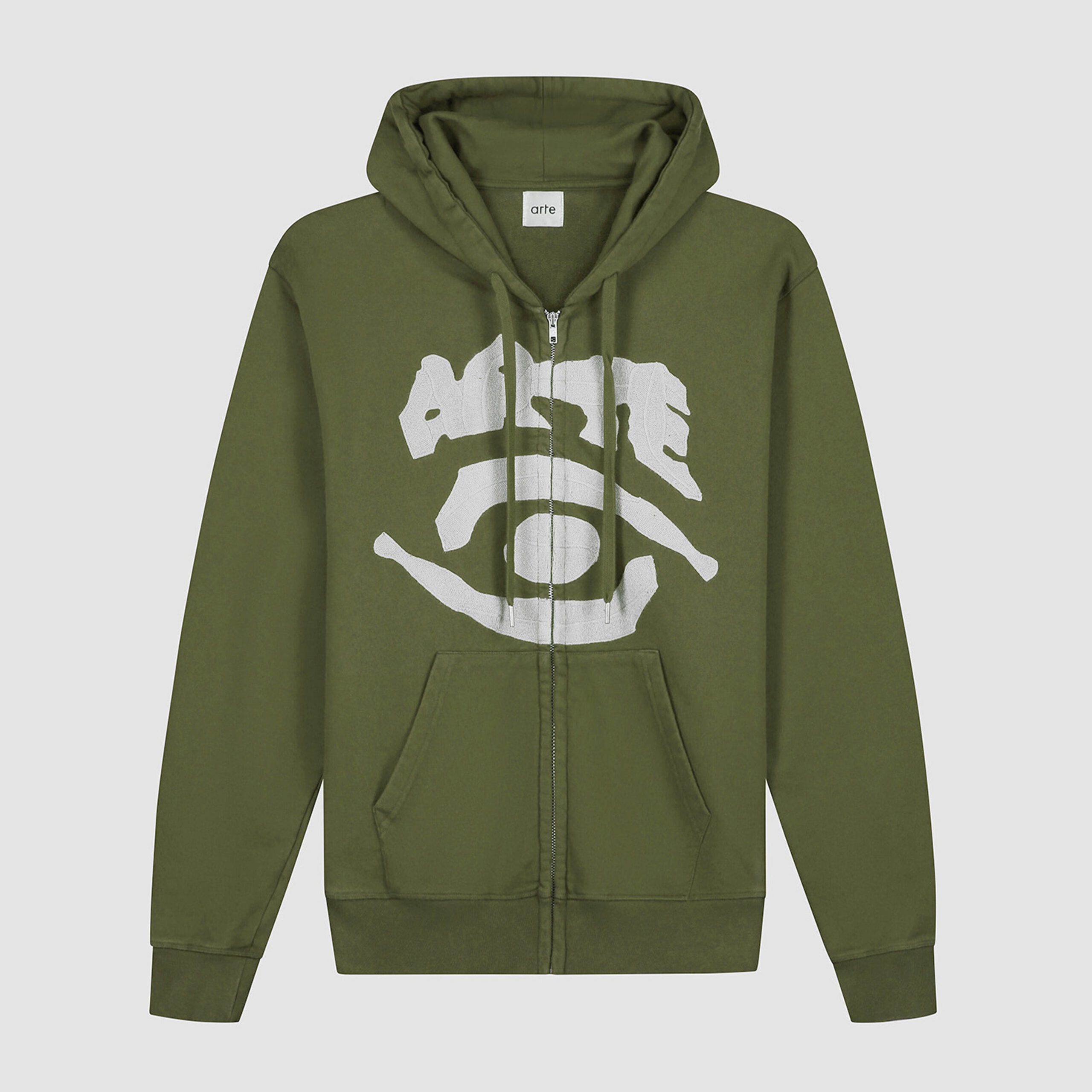 Fabriqué en coton épais de première qualité, ce sweat à capuche zippé est orné du logo d’Arte le logo Arte brodé en blanc sur la poitrine. Le sweat à capuche vert a une coupe décontractée et est doté d’une fermeture éclair sur toute la longueur, de cordons de serrage et de deux poches latérales.