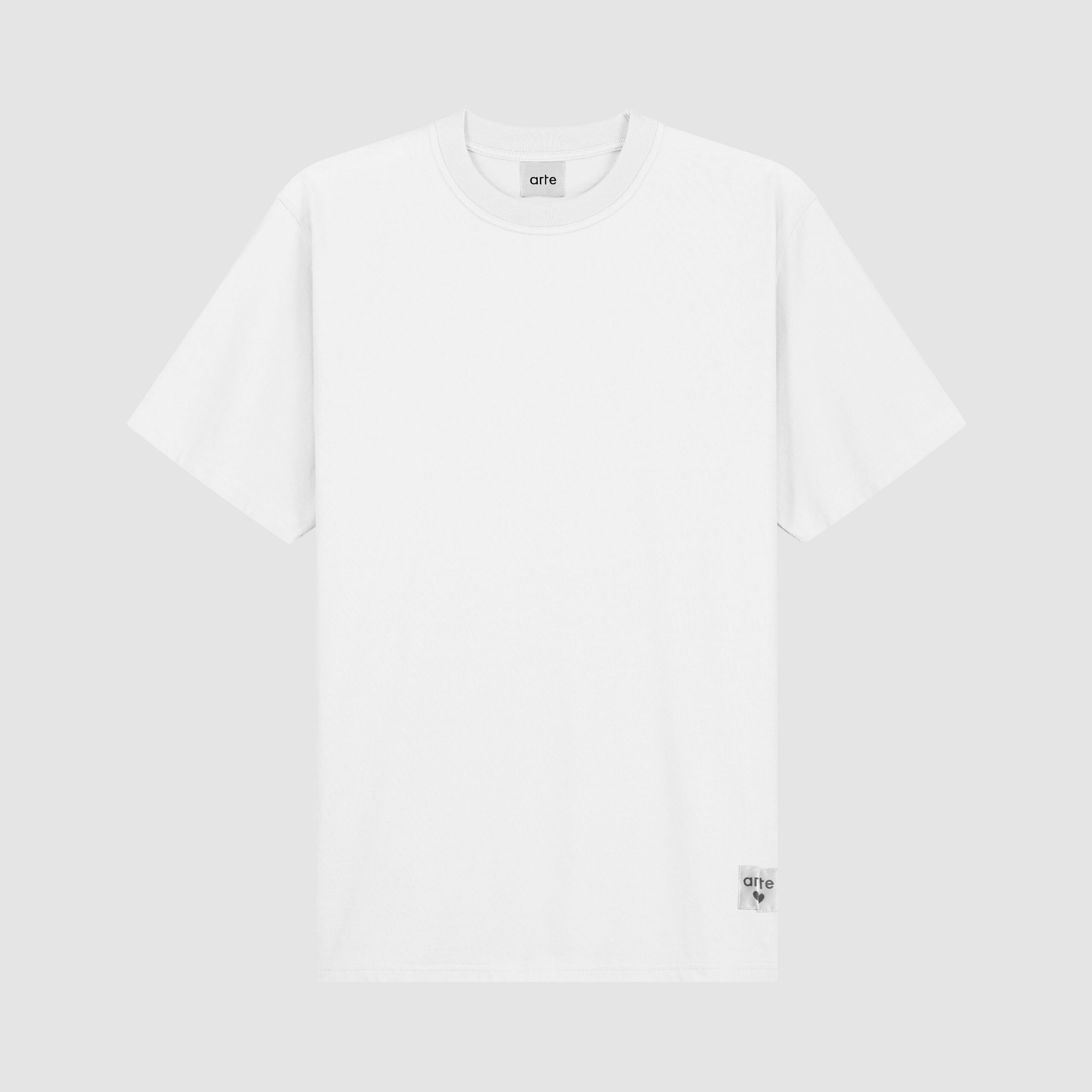 Le t-shirt est réversible. reprenant le thème de la collection par son look distinctif. Le t-shirt blanc comporte plusieurs étiquettes de marque : d’un côté, une étiquette tissée déformée à l’ourlet et, de l’autre, l’étiquette tissée caractéristique Arte au niveau du cou. Ce dernier est intentionnellement cousu à la main, ce qui permet de le retirer facilement. Les étiquettes d’entretien situées sur la couture latérale peuvent également être retirées, ce qui permet de porter le vêtement de manière réversible, sans coutures apparentes. Confectionné dans un coton épais de qualité supérieure, ce t-shirt présente une coupe décontractée et un col légèrement plus haut.