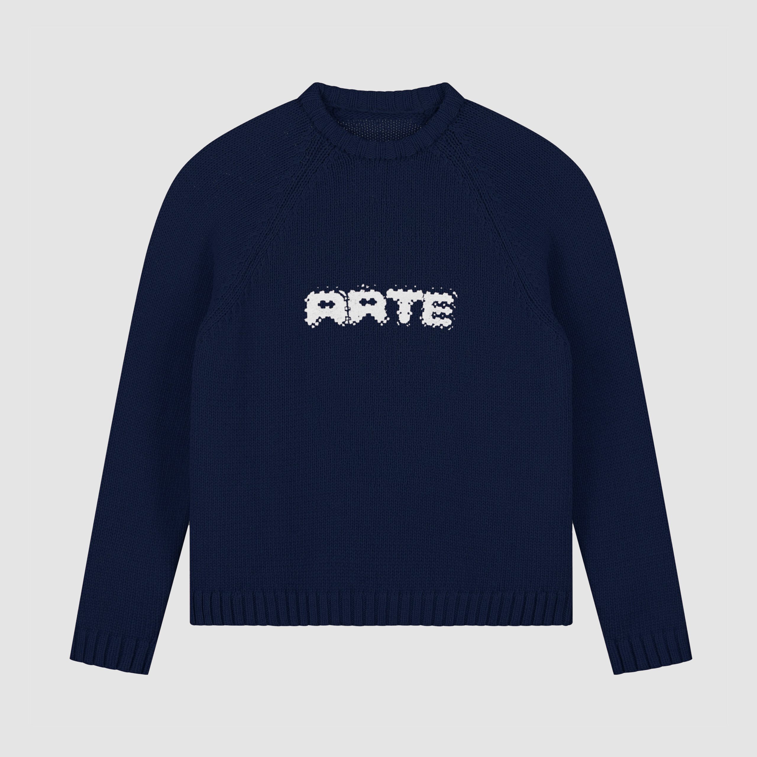 Confectionné en coton épais, ce pull tricoté se décline dans un coloris marine et présente une coupe régulière. Le logo saisonnier d’Arte, qui reprend le thème de la collection, est brodé en blanc sur la poitrine.