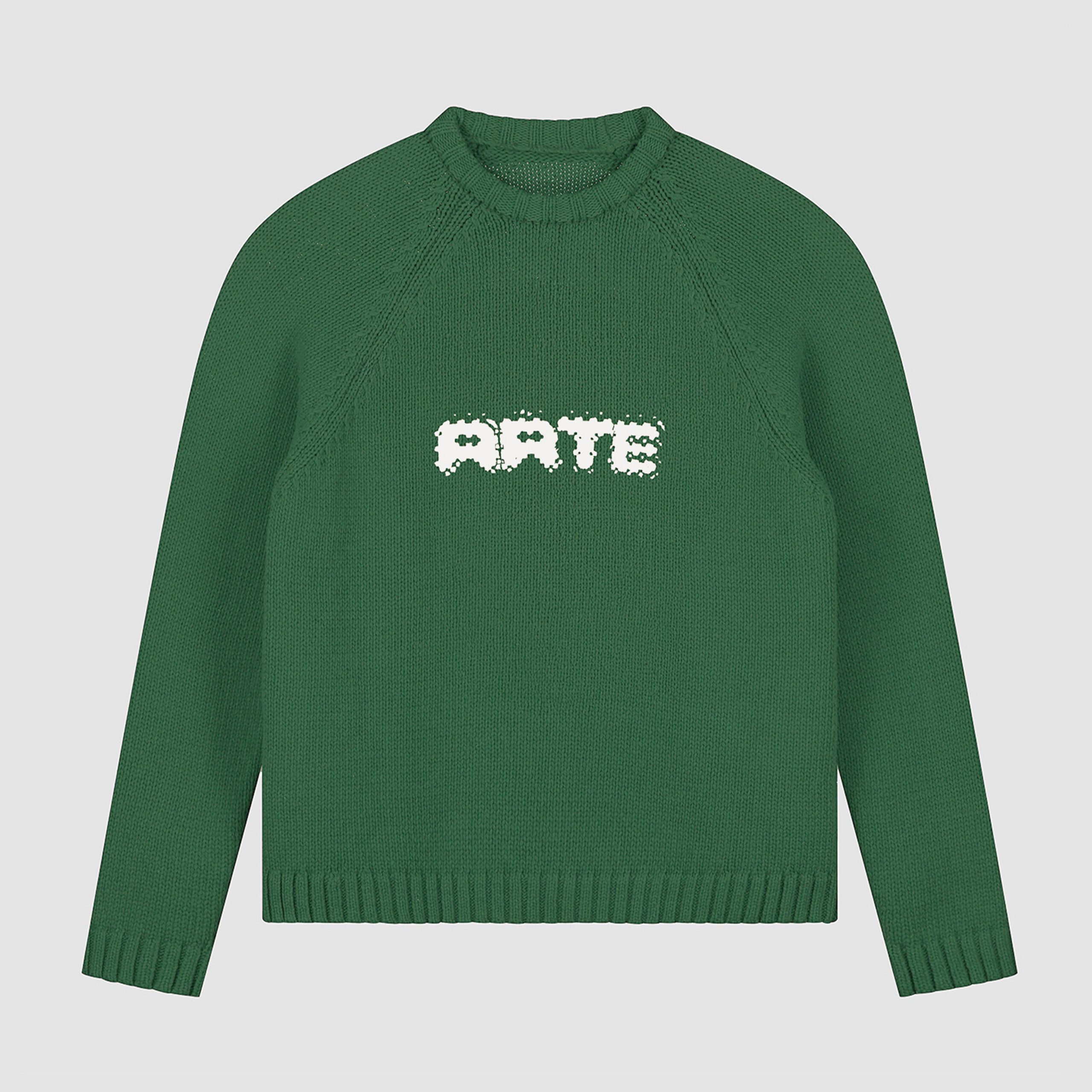 Confectionné en coton épais, ce pull tricoté se décline dans un coloris vert et présente une coupe régulière. Le logo saisonnier d’Arte, qui reprend le thème de la collection, est brodé en blanc sur la poitrine.